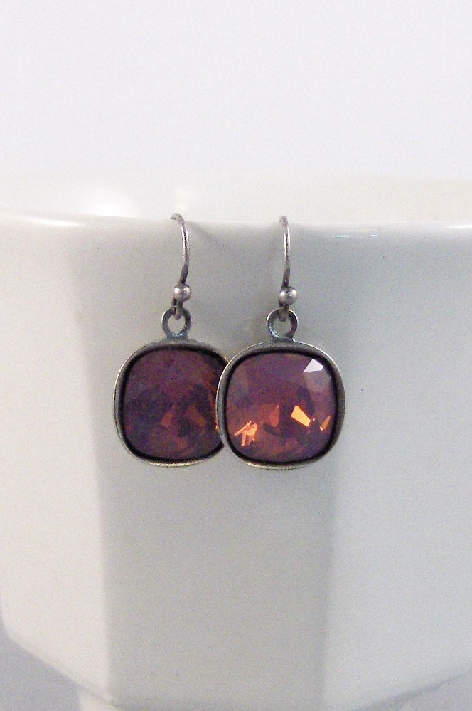 These pretty lavender opal Swarovski stones have been added to pretty antiqued silver settings. These stones are square cushion in shape. I have antiqued silver French ear wires.