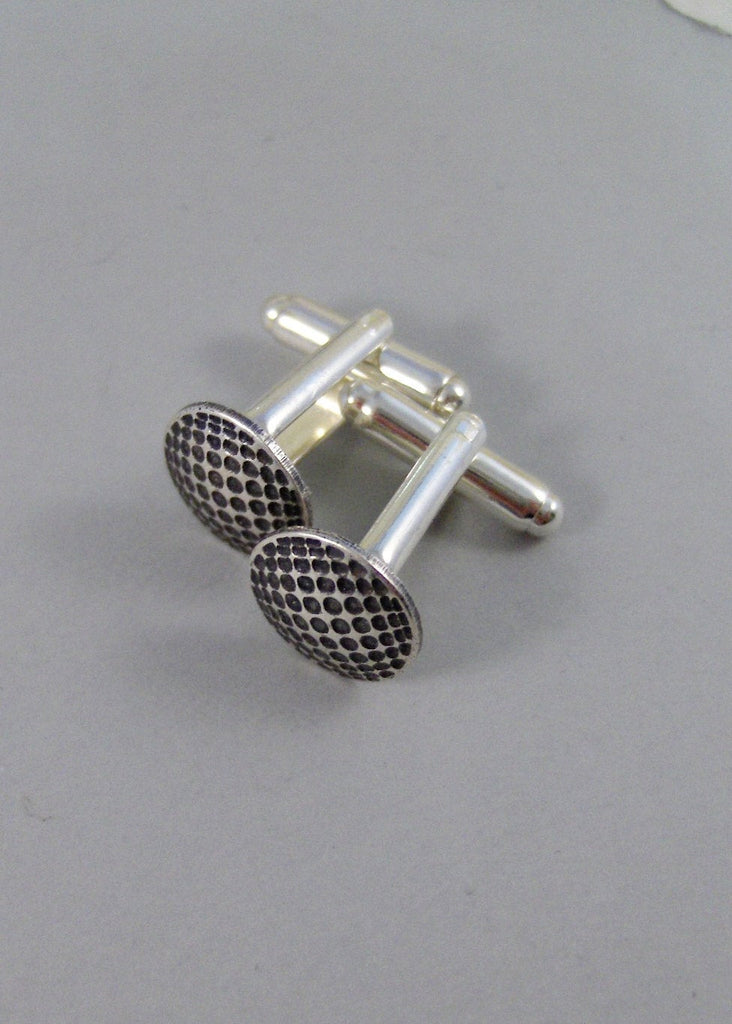 One awesome pair of golf ball cufflinks. The perfect gift for the man in your life, groomsmen, dad, or your hubby. The golf balls are made of antiqued silver, the cuff links are silver plated.