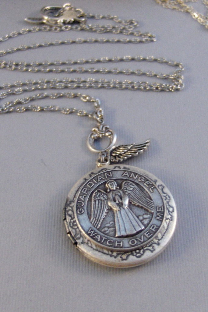 Guardian Angel,AngelNecklace,Locket,Silver Locket,Angel Medal,Silver,Religious,Religious Jewelry,Church Religious Necklace,Valleygirldesigns