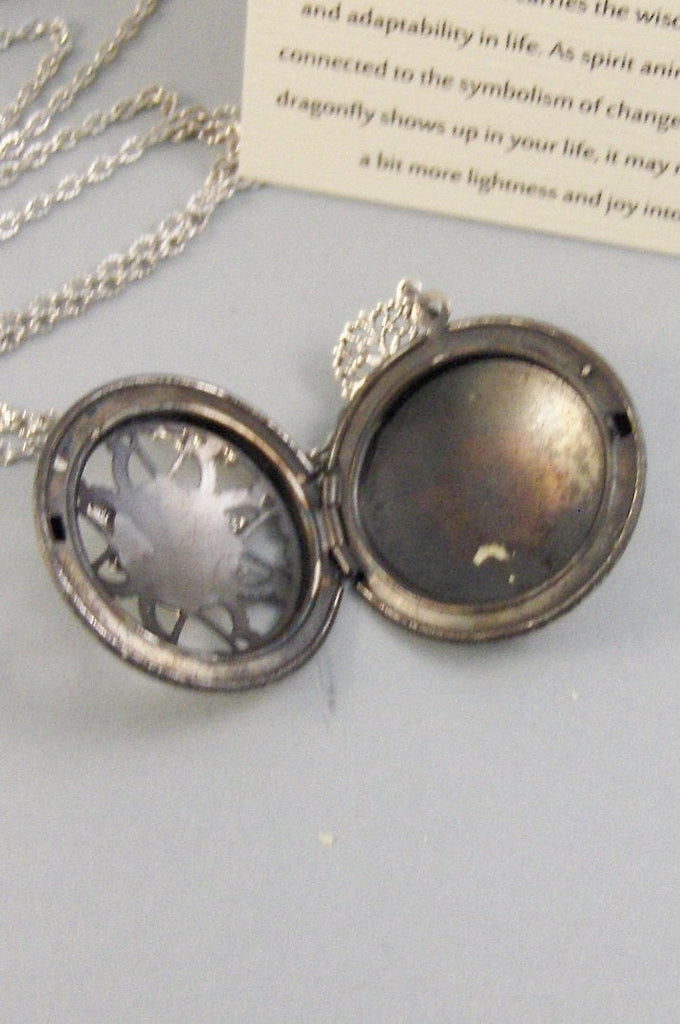 A pretty antiqued silver connector attaches the locket to the antiqued silver chain.