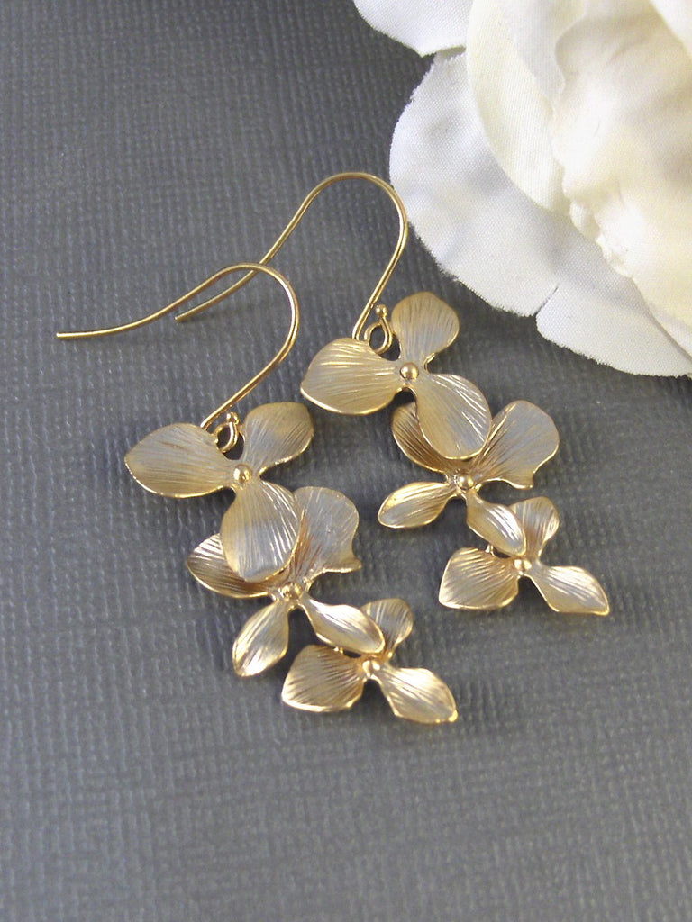 Gold Cascade,Earring,Gold Earrings,Wedding Jewelery,Orchid,Gold Filled,Bride,Flower.Blossom, Handmade jewelery by valleygirldesigns on Etsy.